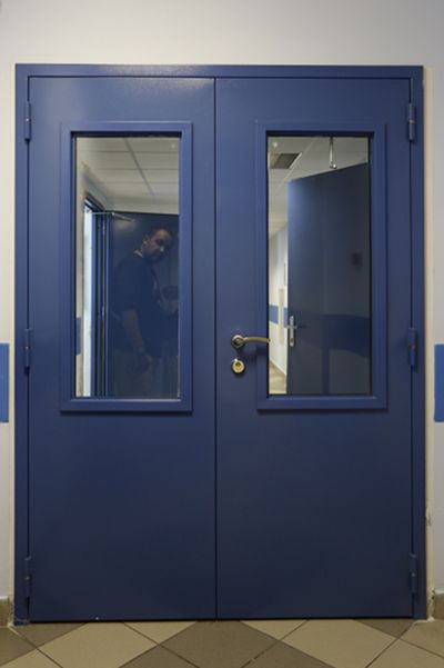 Противопожарная алюминиевая дверь синего цвета во Фрязино