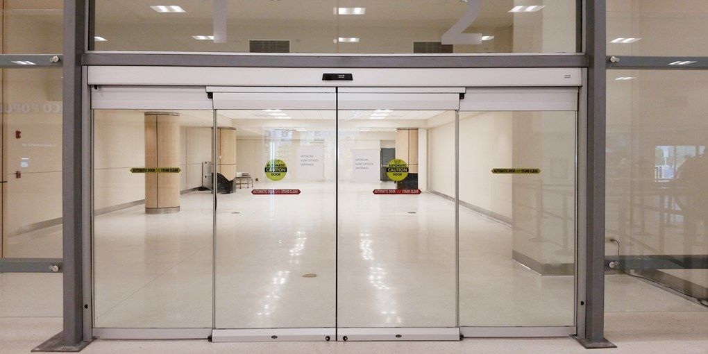 Противопожарная безрамная дверь со стеклом в бизнес центр во Фрязино