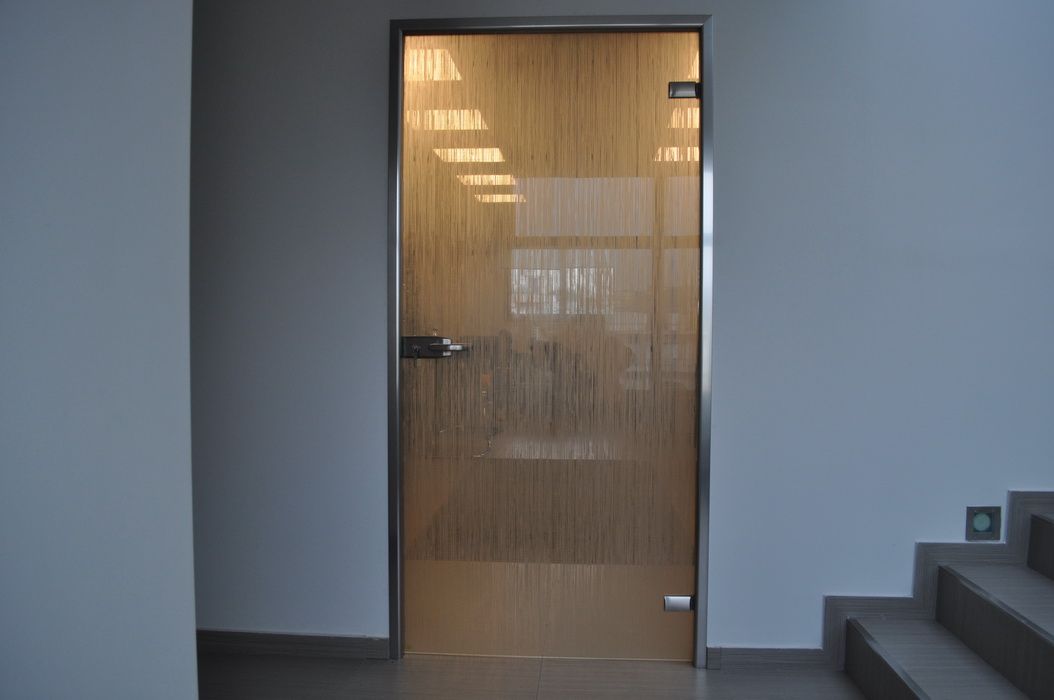 Противопожарная безрамная дверь со стеклом в БЦ во Фрязино